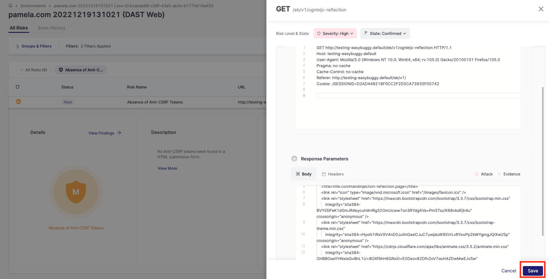 Viewing DAST Results in the Risks Table