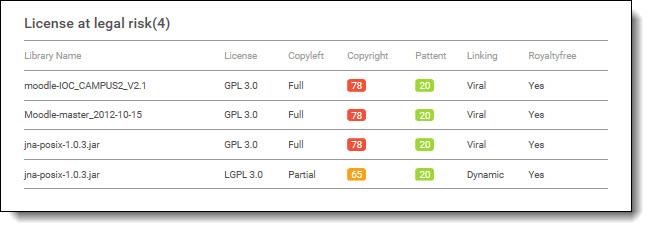 Risk Level - this represents the possible legal risk level with regards to Copyright, Copyleft, Patent and Royalty, Linking and OSD Compliance: